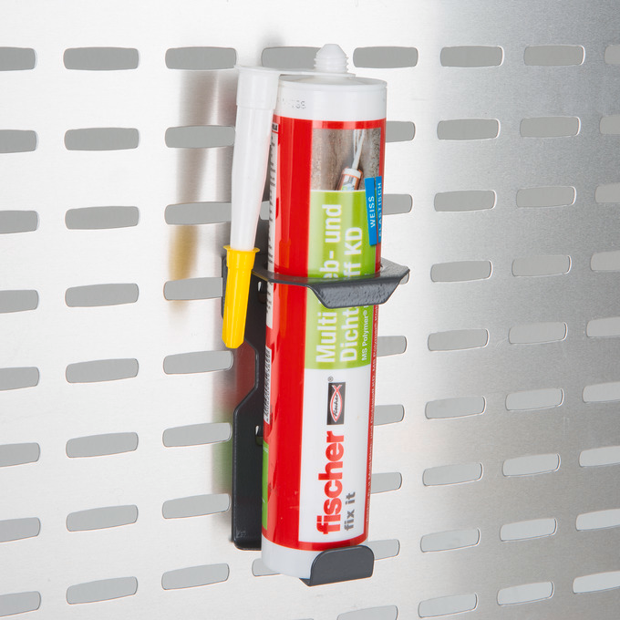 Durch die Verwendung des Kartuschenhalters mit einem Innen-Durchmesser von 53 mm lassen sich alle gängigen Silikonkartuschen, Spraydosen, etc. platzsparend an der Aluminium Seitenwand der Fahrzeugeinrichtung verstauen. Sie haben somit Ihre Kartuschen direkt griffbereit platziert und ordentlich verstaut.