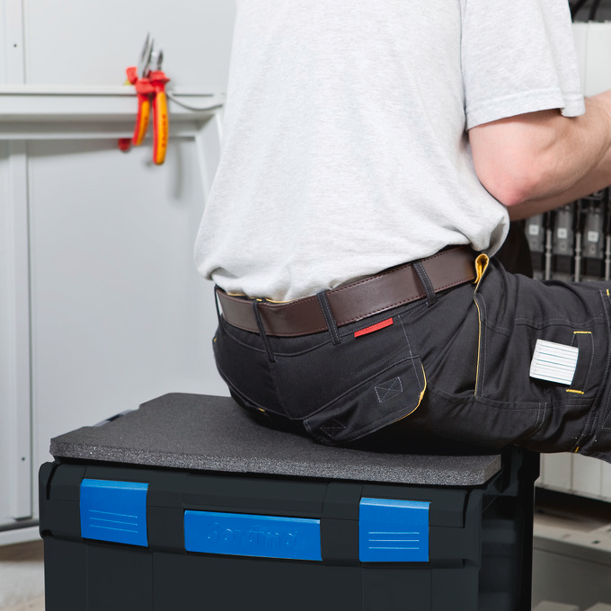 Mit dem Sitzpolster aus weichem Schaumstoff lässt sich jede L-BOXX zur bequemen Sitzgelegenheit aufrüsten. Das Sitzpolster ist zweiteilig und kann so platzsparend beispielsweise in der L-BOXX transportiert werden – so steht immer eine komfortable Sitzgelegenheit für die Pause am Einsatzort zur Verfügung. Durch Aufeinanderstapeln mehrerer L-BOXXen sind verschiedene Sitzhöhen möglich. Das Sitzpolster ist mit allen L-BOXXen, der LS-BOXX 306 G und dem Deckel des i-BOXX Racks G kompatibel.